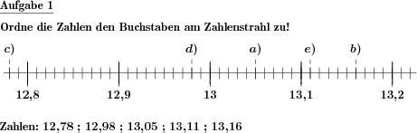 Es ist ein Zahlenstrahl mit Markierungen vorgegeben und einige Zahlen. Welche Zahl gehört zu welcher Markierung?